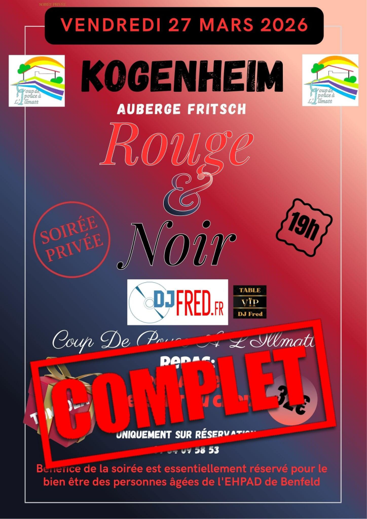 27 Mars 2026 Soirée Rouge & Noir à Kogenheim COMPLET