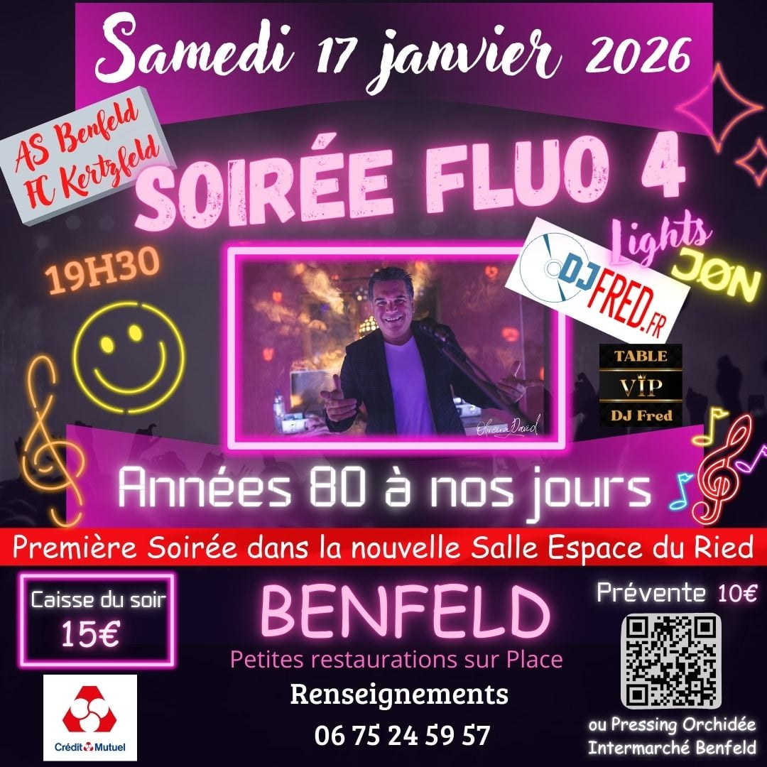 Les clubs AS Benfeld et FC Kertzfeld organisent une grande soirée fluo avec musique des années 80 jusqu’à aujourd’hui.