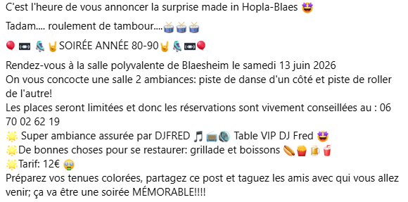 13 juin 2026 Soirée Années 80′ & 90′ Danse & Roller à Blaesheim