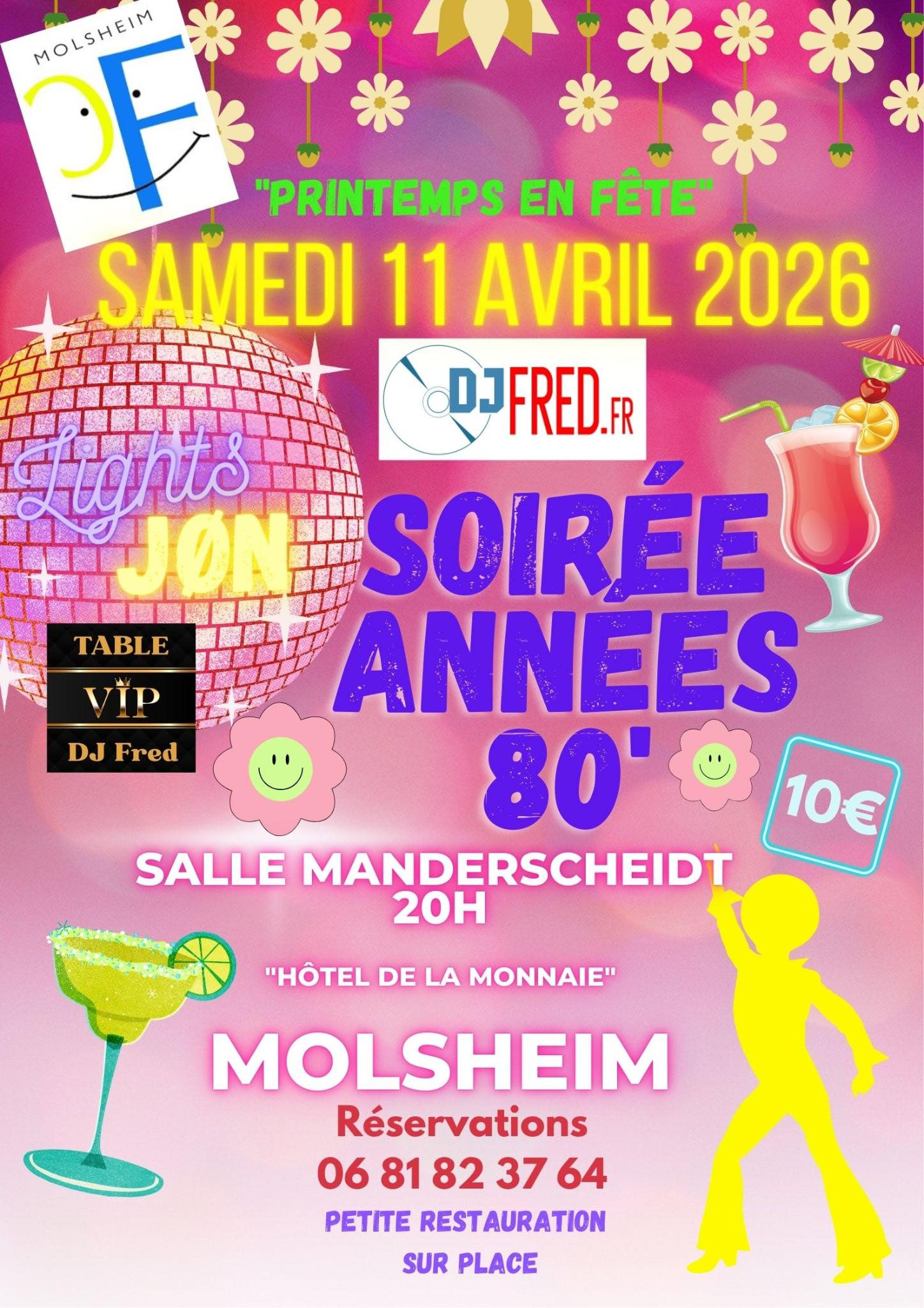 Animation musicale assurée par DJ Fred et Lights Jon, avec une sélection de tubes incontournables des années 80 à aujourd’hui !