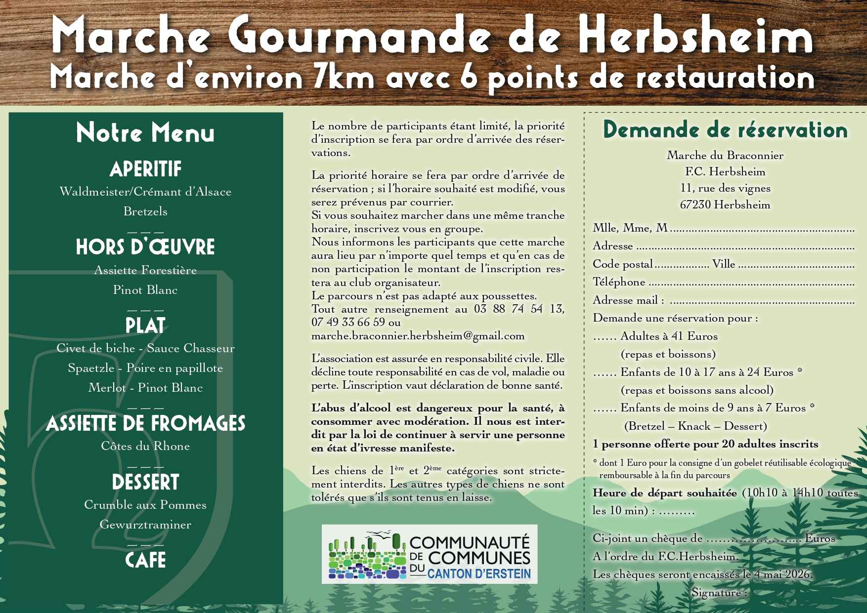 Voici l’adresse mail pour nous contacter : marche.braconnier.herbsheim@free.fr