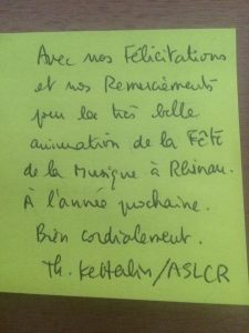 Merci pour ta super animation de la dernière soirée de l’année. Tout le monde était ravi. Cela nous a fait du bien…