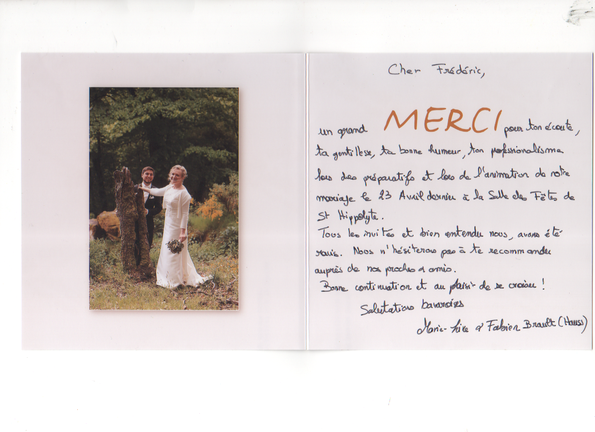 Nous voulions encore une fois remercier dj Fred pour l’animation de notre mariage….